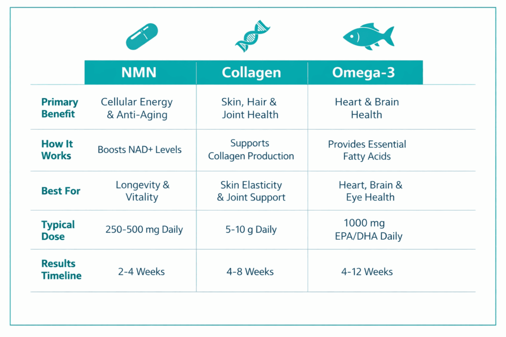 Comparing Approaches: NMN vs Collagen vs Omega-3